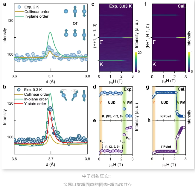 极低温环境是量子测量、量子计算及大科学装置等前沿研究不可或缺的关键条件,当前面临氦‑3资源受限与无氦‑3材料“有冷量、难导出”的双重困境。因此,兼具优异磁热效应与金属级导热能力的理想制冷材料,正是该领域亟待突破的核心难题。针对这一挑战,联合科研团队设计并合成出一类新型铕基合金材料。实验发现,该材料承载独特的“金属自旋超固态”量子态,首次同时实现了巨磁热效应(低至106mK)与超高导热(提升50–100倍)——但这种“固态序与超流序共存”的奇异量子态,恰恰是传统表征手段难以捕捉的。