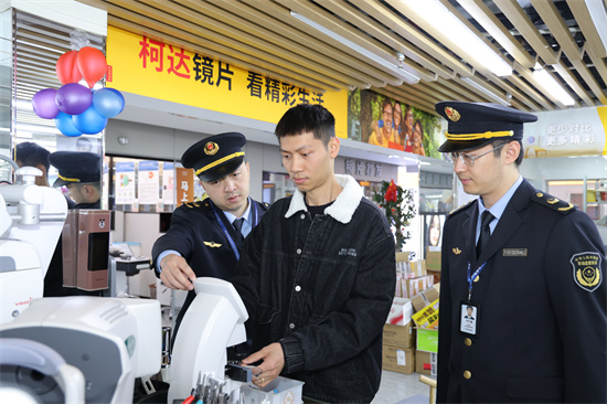 我国近视患者超6亿,眼镜已成为许多人离不开的“伙伴”。配镜时的验光数据准不准?镜片的度数到底对不对?3月3日,浙江省市场监管局联合杭州市市场监管局、杭州市上城区市场监管局走进杭州城东眼镜城,给眼镜店的计量器具“体检”服务,全力守护消费者合法权益。