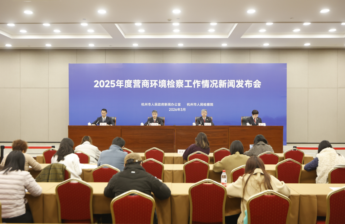 2026年3月6日,杭州市政府新闻办联合市检察院召开2025年度营商环境检察工作情况新闻发布会。市检察院总结了2025年度在维护市场秩序、保护企业合法权益、促进公平竞争等方面的司法实践,现场通报工作情况,发布典型案例。