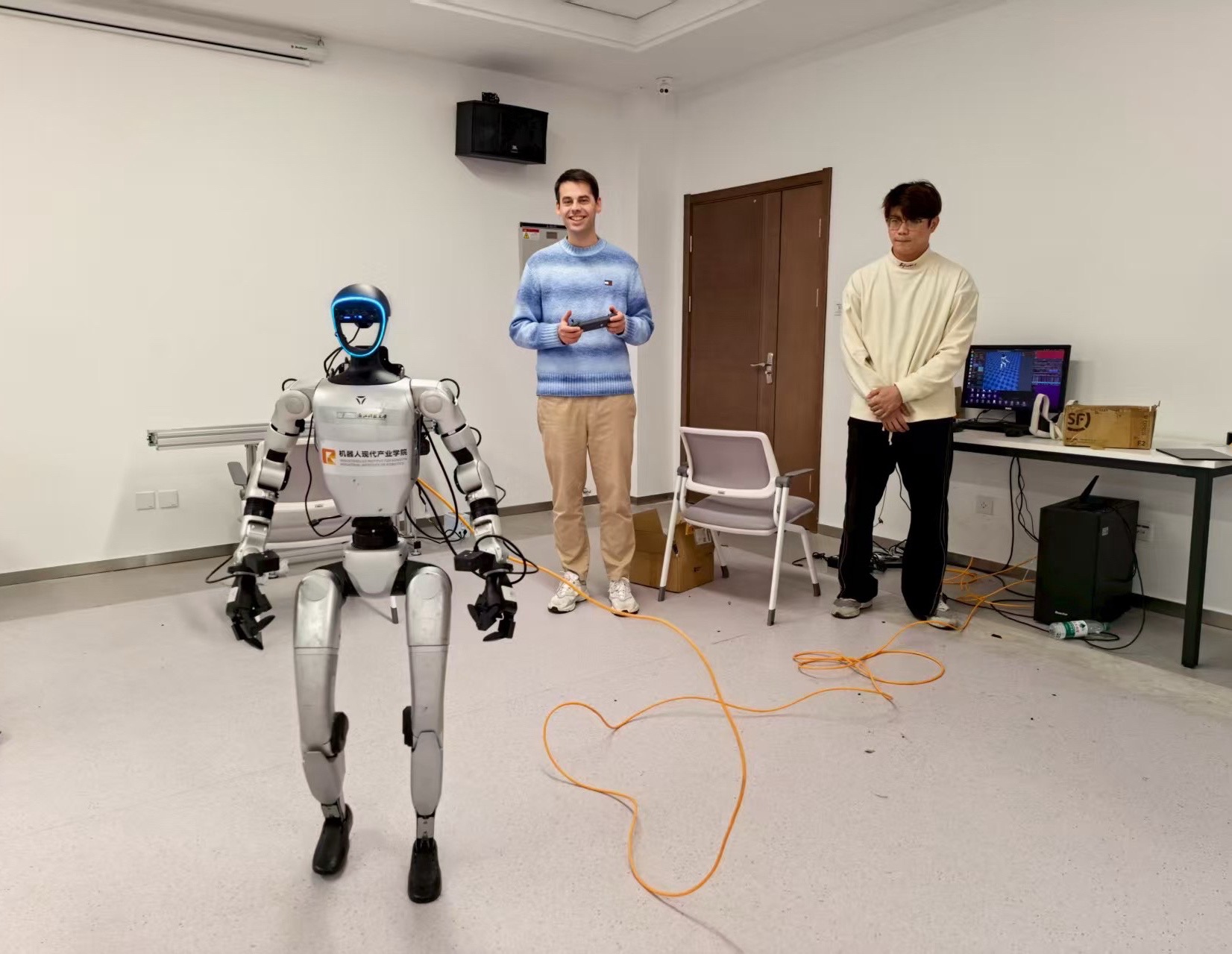 穆勒是在德方导师、德累斯顿技术经济大学君特·施特尔教授推荐下,来中国开展论文研究的,因为这里有行业最新的人形机器人技术。浙江科技大学机器人产业学院费正顺教授与宇树科技高级工程师共同担任他的论文中方导师。穆勒在浙江科技大学不仅能在学校接受学术指导,更能直接在宇树科技的一线研发环境中,接触到全球顶尖的人形机器人技术。