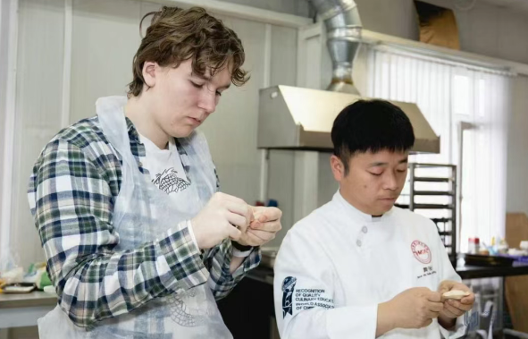 此次,周法剑、万振雄团队在俄罗斯开展杭帮菜中式烹饪技能教学,让俄方师生沉浸式感受中华烹饪的匠心与魅力。课程围绕杭帮菜“选料讲究、制作精细”的特色,精选东坡肉等经典菜品展开教学。从食材的严苛甄选、刀工的精细处理,到火候的精准把控,教师团队进行全流程示范讲解,并在保留核心风味的同时,结合俄罗斯饮食习惯,借鉴杭帮菜国际化改良经验,对刀工技法和菜品呈现形式进行优化调整,降低了学习中国烹饪技艺的门槛,让传统烹饪技艺更受外国友人的青睐。