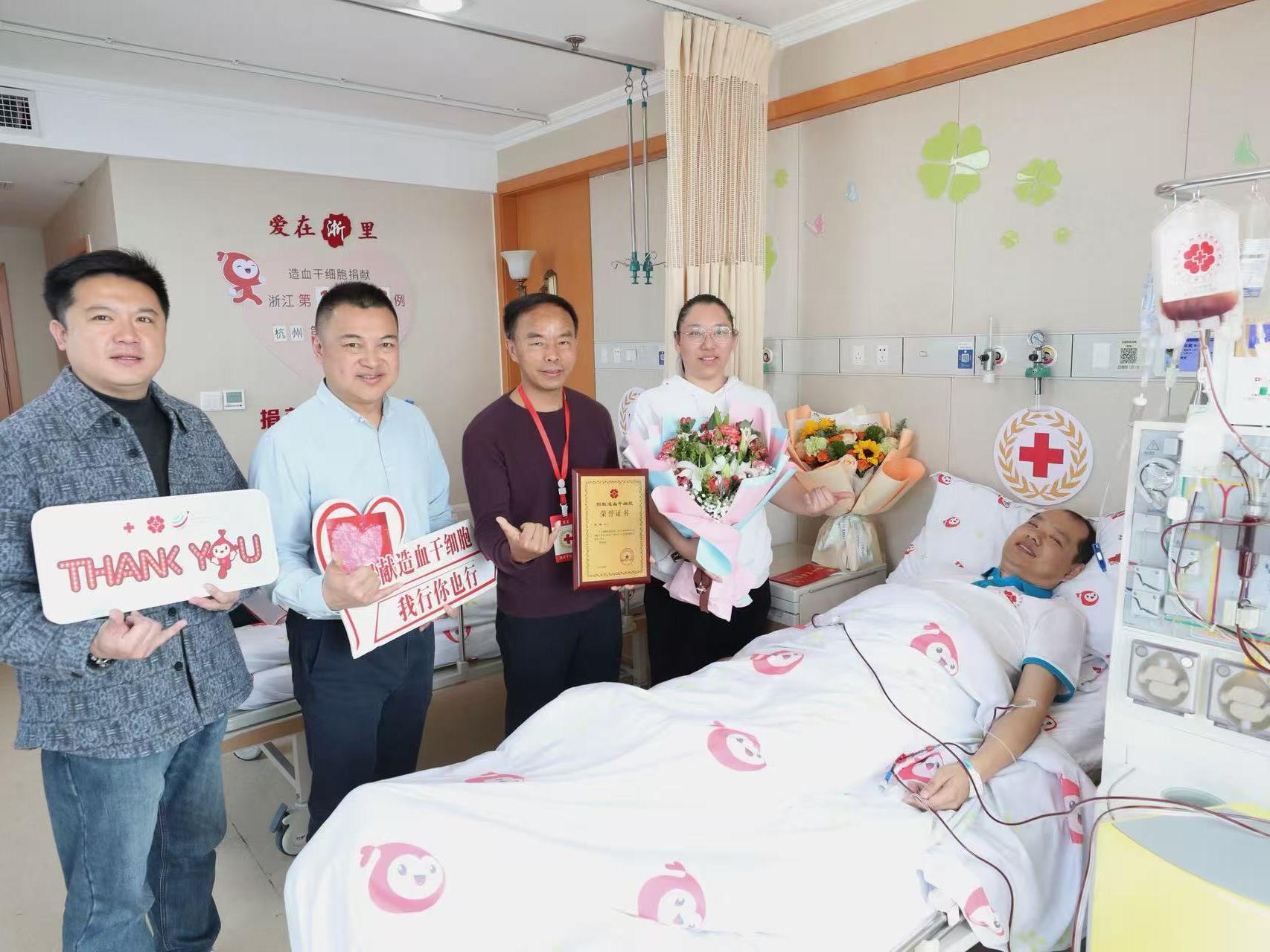 3月13日,在杭州某造血干细胞定点采集医院,经过近3个多小时的采集,吴樑成功捐献了190毫升造血干细胞混悬液,成为浙江省第1368例,杭州市第429例造血干细胞捐献者。
