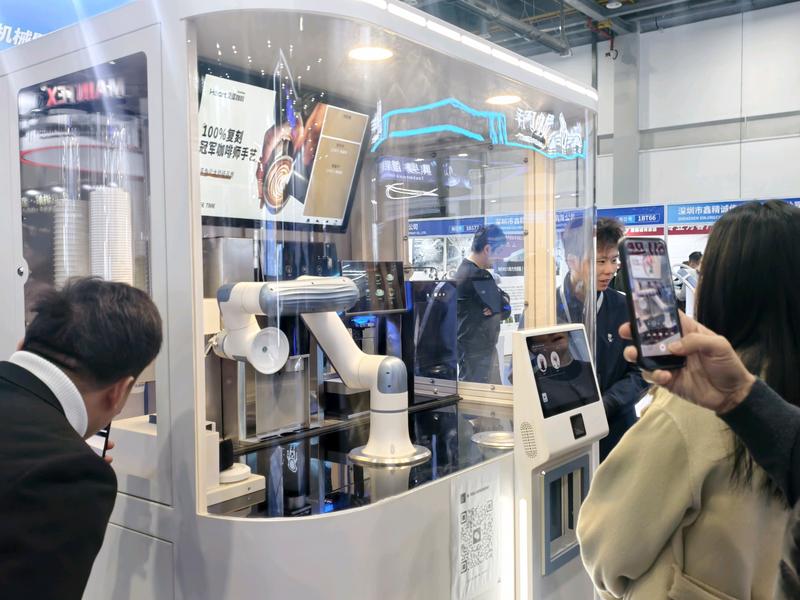 占地2平方米的透明展示盒里,一双六关节灵巧手正稳稳制作咖啡——50秒一杯果汁、95秒一杯咖啡,灵巧得让人惊叹。