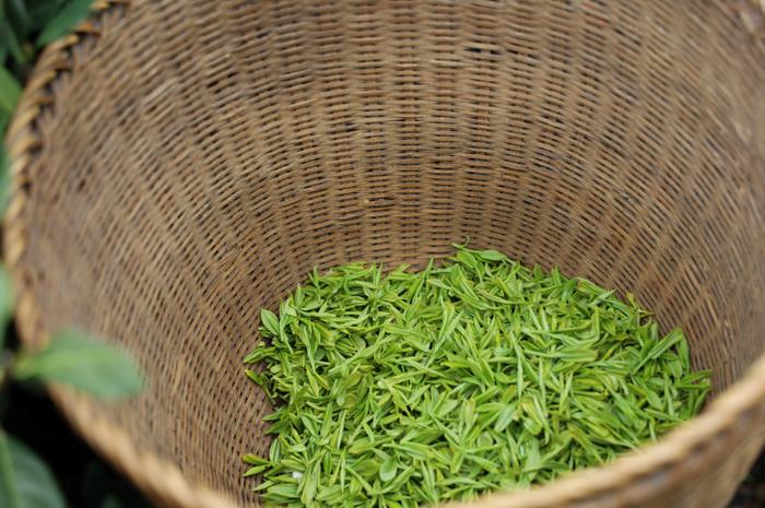 “我们这片茶山朝北,温度光照适宜,水汽也充足,加上勤浇水施肥,所以冒芽会早一点。”茶农沈生荣家有10余亩茶地,今年一共招了12名采茶工,采茶工通常早上六点开采,一直忙到晚上六点。上午10点,茶篓里的第二篓茶已装了一小半。“现在采摘的是明前茶,芽尖饱满、口感清甜,会一直采到清明。”