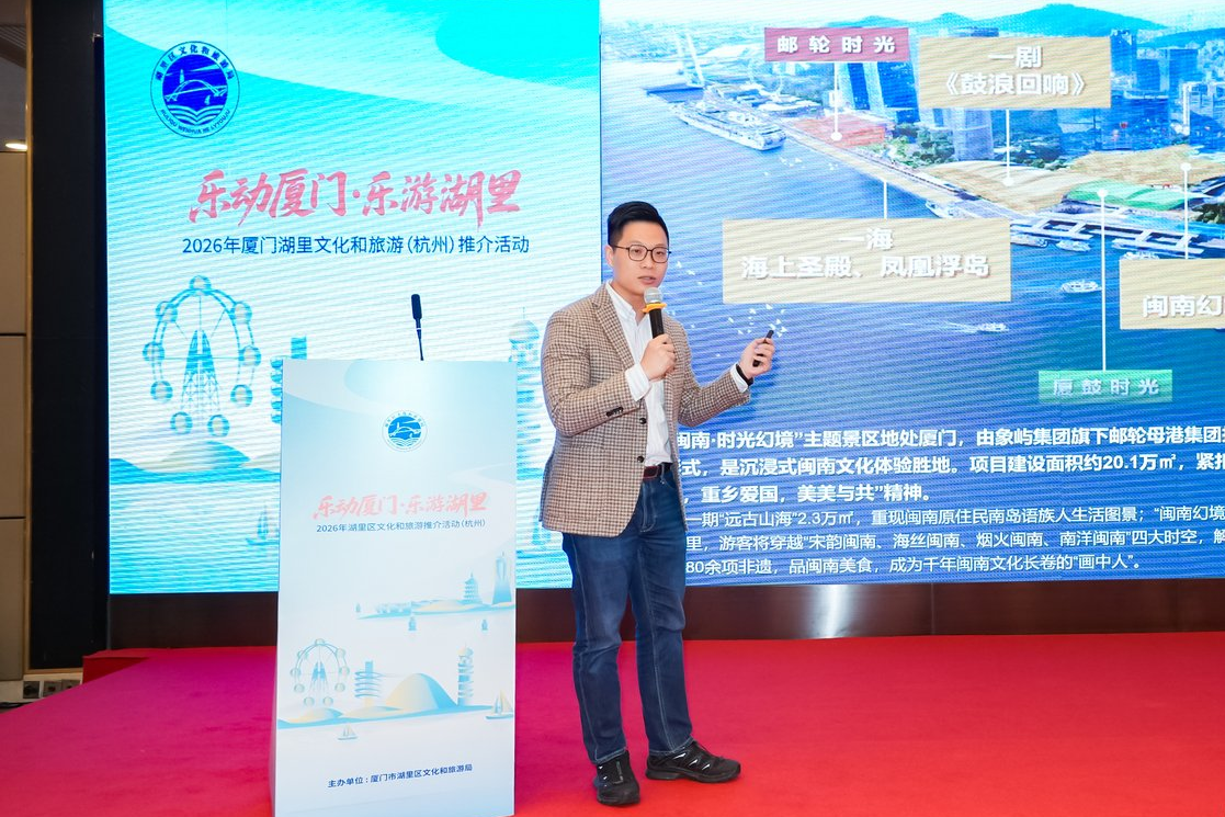 3月19日,厦门湖里文化和旅游(杭州)推介活动在杭举办。推介活动紧扣当前文旅消费提质升级的大趋势,精准立足杭厦两地文旅产业互补优势,重点聚焦会奖经济、高端酒店、特色景区、专业会展场馆等核心领域,通过政策赋能、政企联动、资源互通的务实模式,打破跨区域文旅合作沟通壁垒,全面激活杭州、厦门两地文旅产业协同发展的新动能。