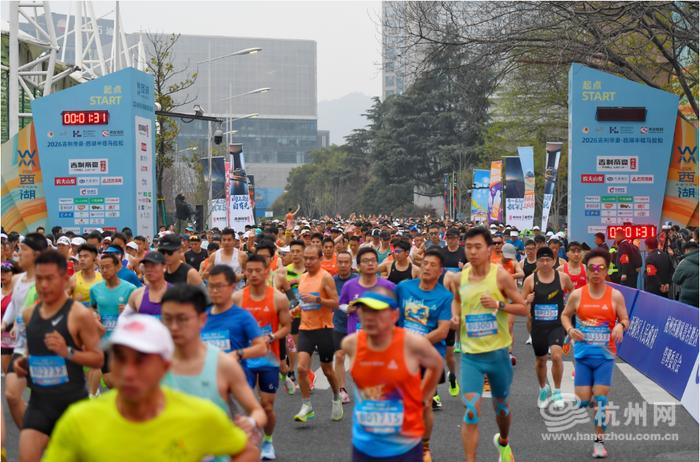3月22日上午6时30分,2026西湖半程马拉松在浙江省黄龙体育中心鸣枪开跑。上万名跑者在晨光中冲出起跑线,以奔跑的姿态拥抱西湖的春天,在湖光山色间展开了一场关于速度与坚持的竞技。