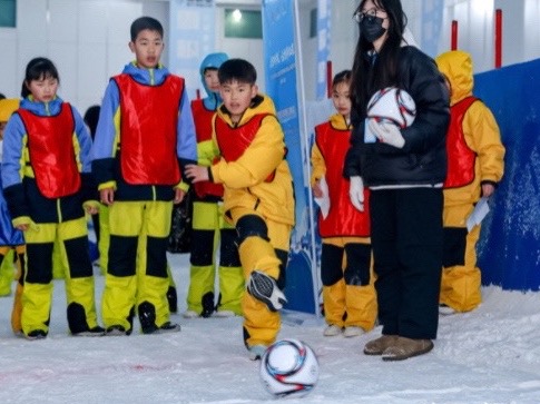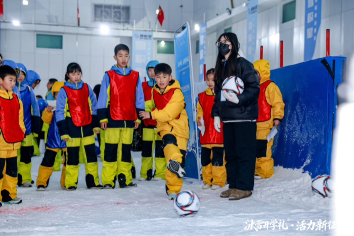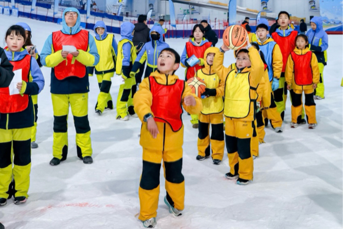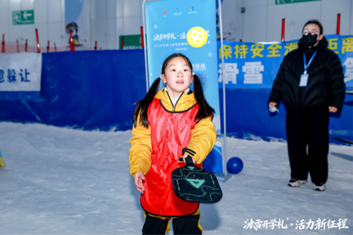 教学环节结束后,雪场化身为亲子乐园。四个趣味打卡点前,欢呼声此起彼伏。雪地匹克球颠球区、亲子健身接力区、雪地投篮区、雪地拔河区……处处是大人孩子齐上阵的热闹场面。