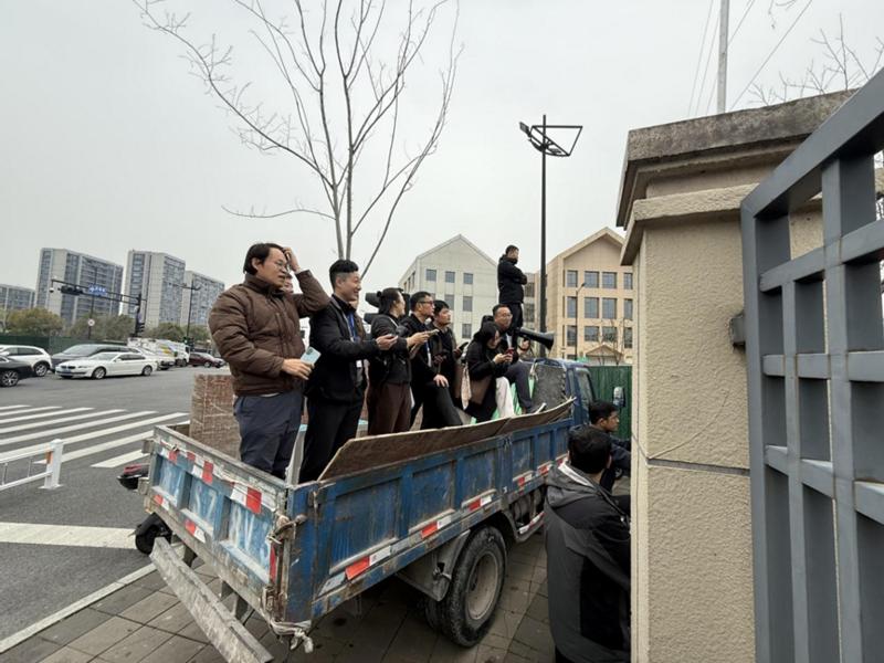 现场直击:围栏外“长满”助威团,老师站上卡车、梯子大喇叭喊话