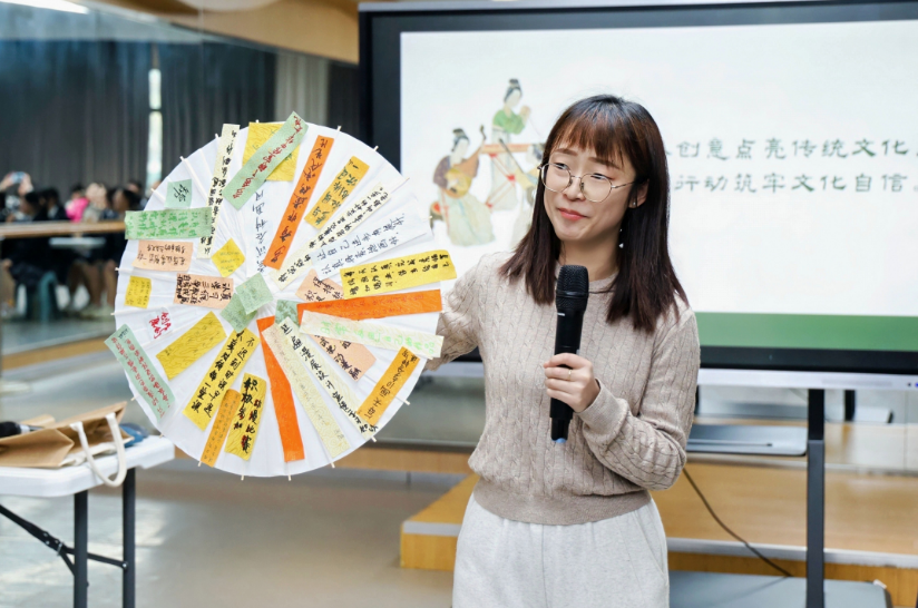 班会尾声,学生们在绸伞上书写传承祝愿,完成了一场富有仪式感的文化认同互动。教师寄语学生:“用专业画笔传文脉,用创意让非遗焕新,让文化自信成为青春的底色。”