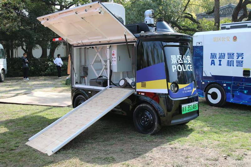 “报告指挥中心,机警方阵已全部就位!”3月25日下午,随着指令下达,景区分局“机警方阵”迅速集结、整装待发。针对西湖景区游客量大、水域广、山林地形复杂等特点,分局在原有AI警队基础上,积极打造机器人集群作战平台,率先组建全市首个“天空地”一体的“机警方阵”。该方阵以无人驾驶舱为核心,形似“陆地航母”,集成无人机操作平台与机器狗,可通过智慧巡逻平台实现远程操控。巡逻中,无人车遇拥堵、水域或山林路段,可实时调度无人机升空,通过喊话器、探照灯开展风险预警;面对小巷、山道等复杂地形,机器狗可灵活穿梭,完成物资运送、死角巡查,同时实现双向通话、一键报警等功能,形成“无人车+机器狗+无人机”协同作战模式,构建“机机协同、人机一体”的多维巡防格局,让AI警队成为景区平安的新质战力。