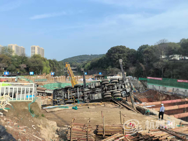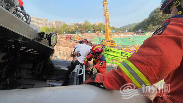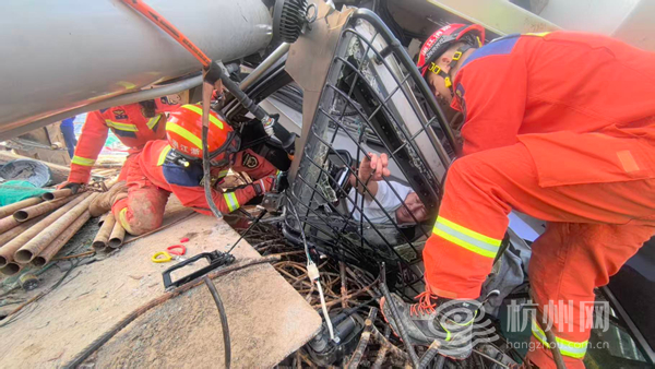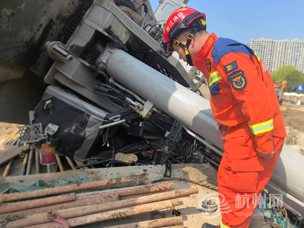 3月25日13时37分,杭州消防救援支队指挥中心接到紧急报警:位于钱塘江沿江一线大闸提升改建项目一工段施工现场,一辆大型吊车突发侧翻事故,驾驶室严重变形,一名驾驶员被困其中,情况危急。接到报警后,指挥中心迅速响应,立即调派河庄站、彭埠特勤站共4车20名消防救援人员,携带专业救援装备赶赴现场处置,一场与时间赛跑的生命救援正式展开。