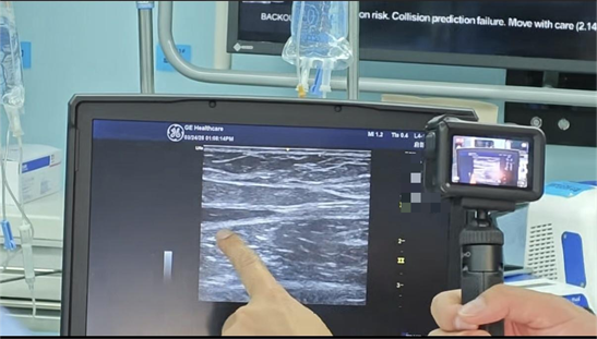 3月24日,孙大伯的手术在超声实时引导下顺利进行。蒋劲松通过一个细小的穿刺点,借助导管将静脉胶精准注入病变的静脉血管内。在与血液接触的瞬间,液态胶水迅速发生聚合,变成固态交联网状结构,将血管壁牢固黏附,即刻实现血管的有效闭合。