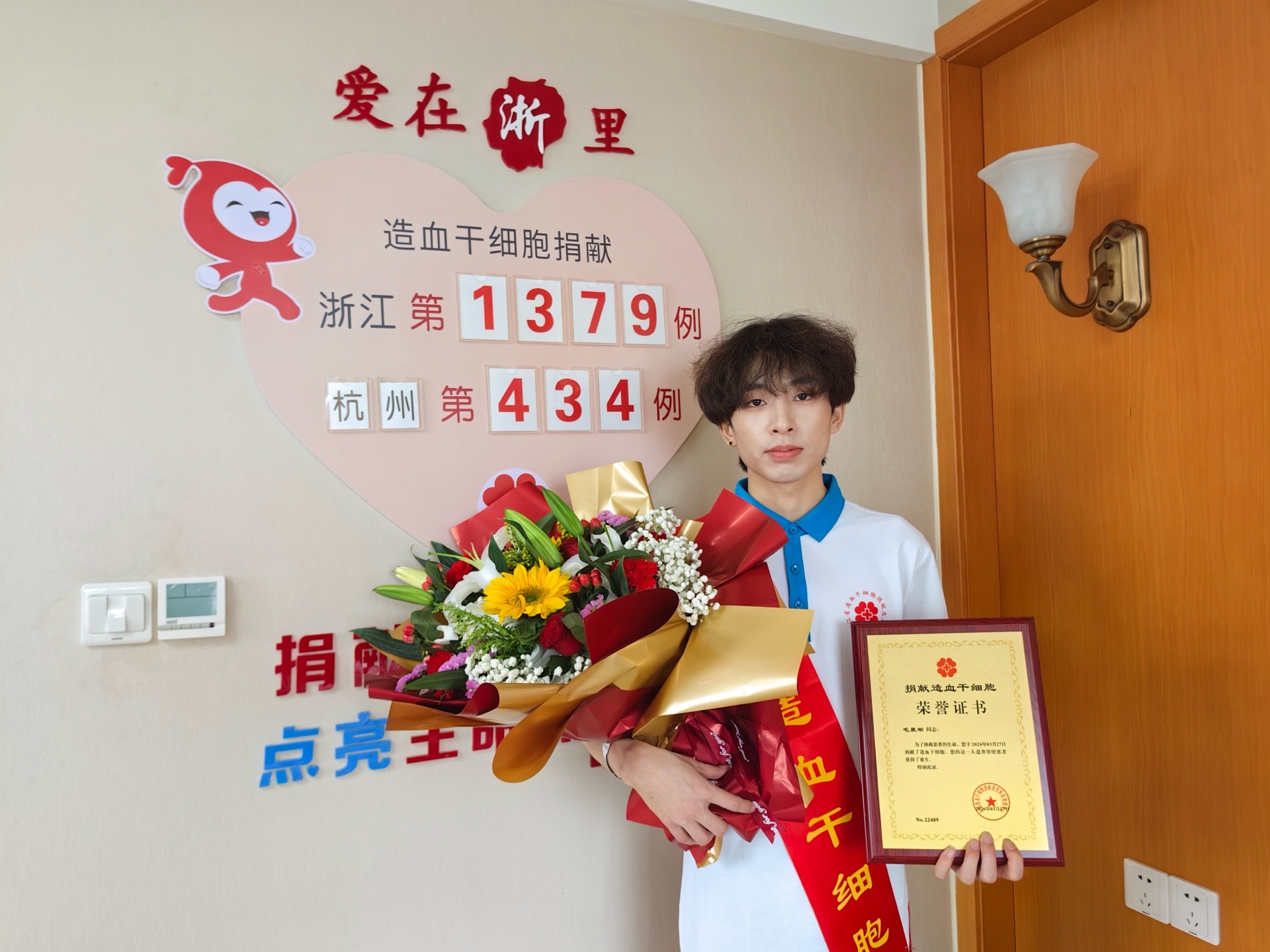 这袋“生命种子”的捐献者叫毛晨晰,出生于嘉兴平湖,今年21岁,目前在杭州工作。这场捐献,让他成为浙江省第1379例、杭州市第434例造血干细胞捐献者。