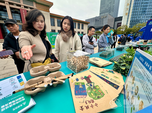 此外,活动现场还设置了观摩互动区,吸引众多市民驻足参与。在可回收物知识宣教区,主题展板图文并茂地展示了可回收物分类知识;垃圾分类互动体验区里,市民通过投放游戏赢取小礼品,寓教于乐;设施设备展示区内,市环境集团新能源可回收物运输车辆,以及爱回收、墅袋熊、虎哥、联运等单位的回收车辆整齐排列,爱回收、联运等智能回收箱体亮相,让市民近距离了解回收设施设备;再生产品展示区则动态呈现了可回收物从回收到再生的全过程,让市民直观感受“变废为宝”的神奇。