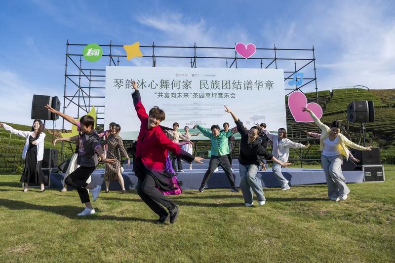 活动现场,各点位人潮涌动、氛围热烈。何家村会场紧扣“传统与现代对话”主线,既有经典曲目深情演绎,又有创新编排的独奏与合奏,更融入《采茶舞曲》等极具地域特色的曲目,赢得现场村民阵阵喝彩;九街会场以“茶韵青春”为主题,流行、国风、民乐等多元曲风轮番登场,灵动音符在袅袅茶香中婉转流淌。何家村村民徐大伯一边跟着节目哼唱一边感慨:“以前总觉得音乐演出离生活很远,现在家门口就能听到好听、接地气的专业演奏,日子越过越有滋味了!”