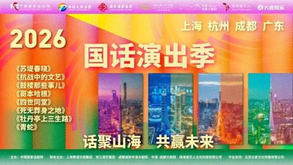 此次演出季设立上海、杭州、成都、广东四大分会场,自4月至12月,《青蛇》《苏堤春晓》《牡丹亭上三生路》《弦歌不辍唱山河》(抗战中的文艺)《四世同堂》《死无葬身之地》《哥本哈根》《鼓楼那些事儿》共8部国话经典剧目、80余场演出将在全国多座城市接力献艺。