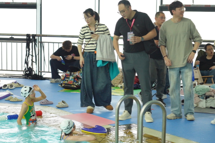 泳池边,国家游泳队教练蔡力的身影格外醒目,他是徐嘉余等人的主管教练,帮助中国队在巴黎奥运会上获得了男子4×100米混合泳接力金牌。不过,这次他身兼“陪赛老爸+专业教练”双重身份,解锁了青训新体验,在指导女儿参赛的同时,也会留意赛场,期盼发掘有天赋的游泳好苗子。“平时带国家队队员,满脑子都是战术和成绩,这次陪女儿来,才算真正零距离感受青少年游泳的基层生态。”