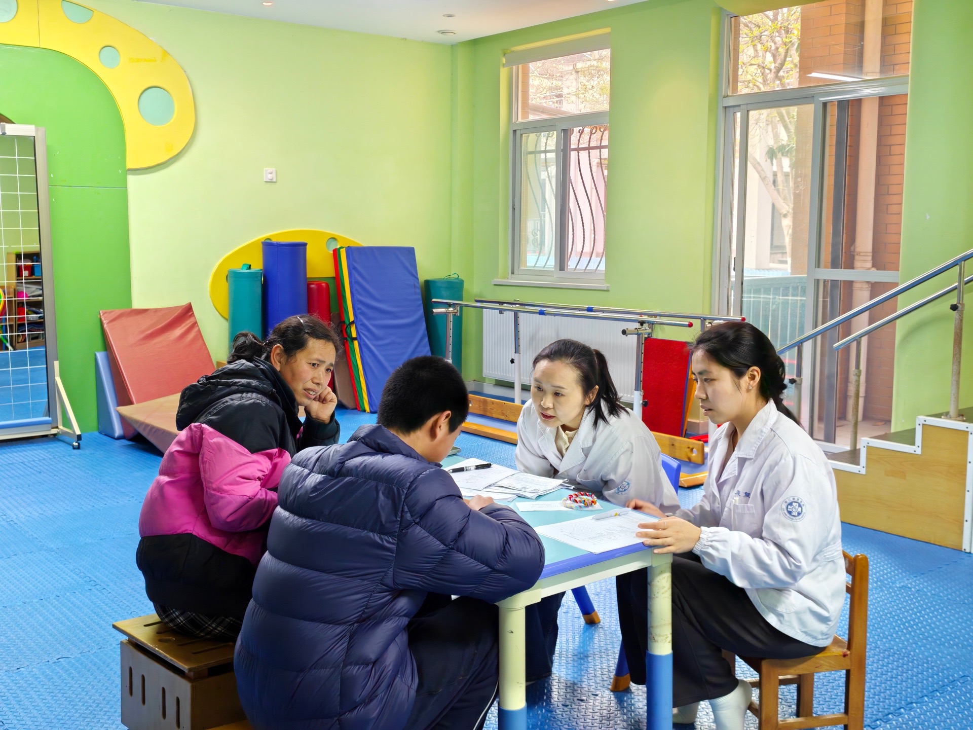 活动当天,杭州市第七人民医院儿童心理科主任周国岭受邀来到现场。作为儿童心理领域的资深专家,他耐心倾听多位家长诉说困惑,逐一解答关于行为干预、情绪管理等实际问题。在评估室内,福利院的康复师们从生活自理、认知表达、运动发展等多个维度,记录孩子们的身心发展状况,为后续制定个性化康复方案提供依据。