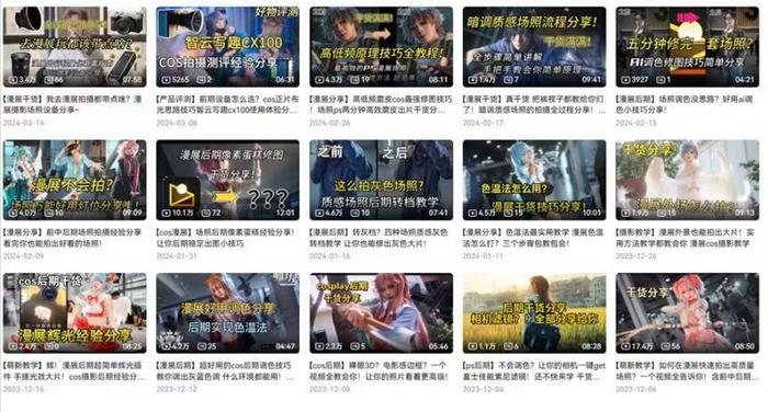 说起如何走上这条二次元摄影路,张佳哲说,与大学动漫社有关。“我喜欢摄影,常为社团同学拍摄cosplay写真,并且剪辑教学视频分享至各大社交平台,教大家如何做漫展布光。”他的第一批粉丝,就是靠这些“冷门知识点”慢慢攒起来的。他算过,早期一条教学视频的制作成本几乎为0,但带来的粉丝留存率特别高。“因为来的人都是真心想学的,不是随便刷到就划走了。”