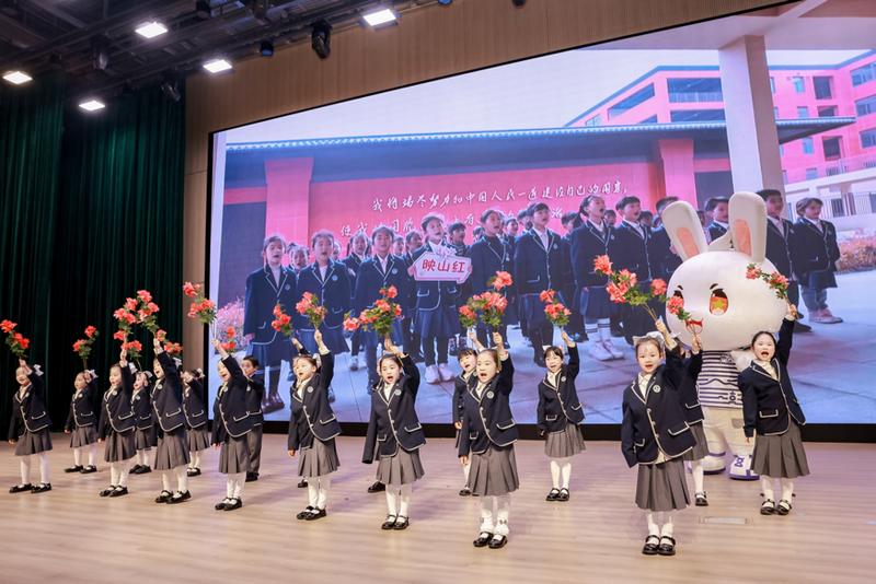 当天也是杭州八一学校首个山歌节,校园内,从大别山革命老区引进的400株映山红竞相绽放。全场师生共同唱响红色经典《映山红》,歌声缅怀先烈,传承红色基因。学校还通过小兵训练营、老兵故事会等丰富多彩的活动,在孩子们心中种下红色传承的种子。