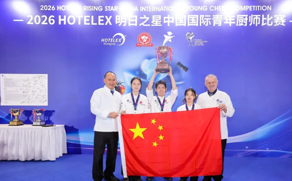 日前,2026HOTELEX明日之星中国国际青年厨师比赛(CIYCC)在上海国家会展中心圆满落幕。浙江旅游职业学院在赛事中斩获11金2银3铜,并摘得重量级奖项——最佳青年厨师团队冠军杯。