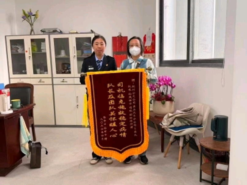 时隔4天,心怀感激的该女士专程赶到五车队办公室,将这面印着感谢话语的锦旗送到了工作人员手中,兑现了谢意。胡师傅的暖心善举,用自己的细心与担当,为突发疾病的市民撑起了一把“安全伞”,也用平凡的行动,传递着杭州公交人的责任与城市的温暖。