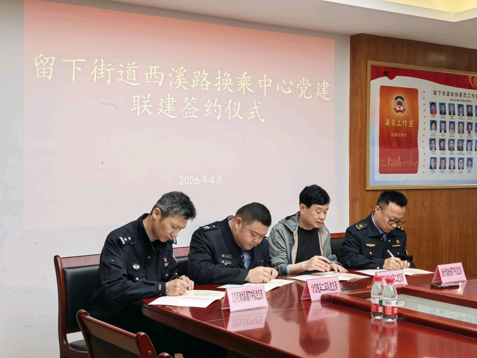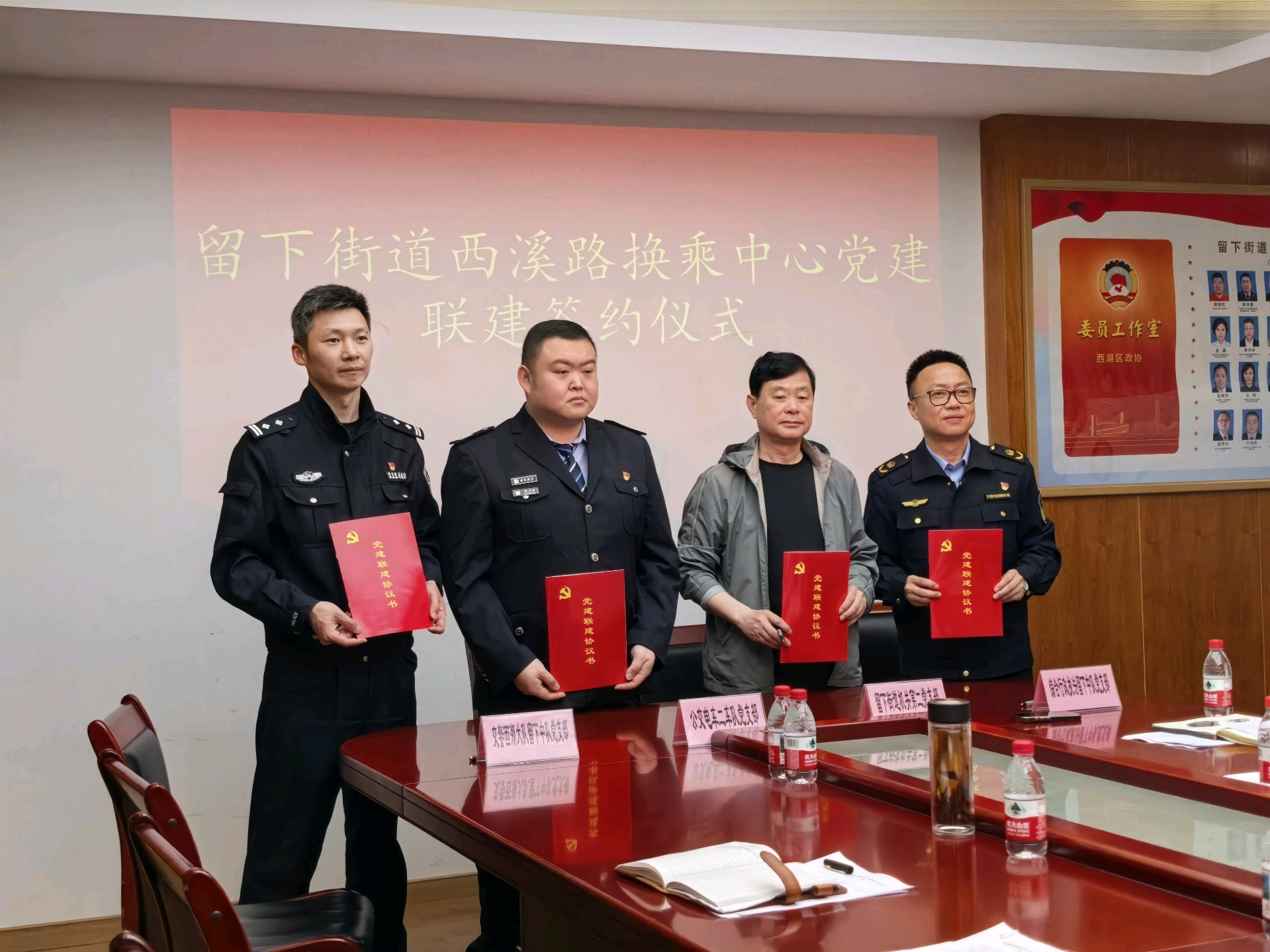 4月10日上午,一场以“党建引领筑堡垒・攻坚共建促提升”为主题的党建联建签约仪式,在西湖区东岳社区党群服务中心举行。留下街道机关第二党支部联合杭州公交电车分公司二车队党支部、西湖区综合行政执法局留下中队党支部、杭州市公安局交通管理支队西湖大队留下中队党支部共同完成签约,四方将以党建联建为纽带,携手为西湖景区・西溪路换乘中心的提质增效保驾护航。