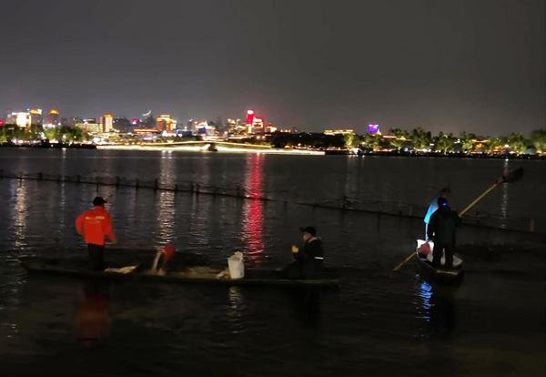 7吨漂白粉分周精准投放,夜间作业避扰游客赏湖