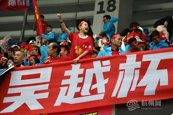 杭州队小球迷在看台上呐喊助威