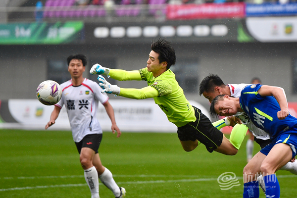 嘉兴队门将飞身扑救