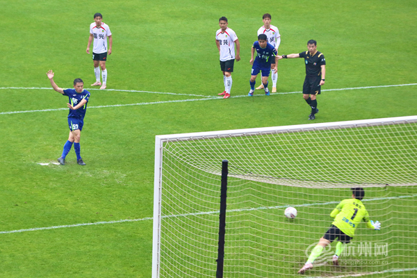 18分钟,杭州队获得点球机会,吴昊一记冷静推射,杭州队取得领先