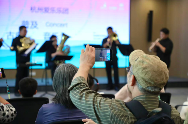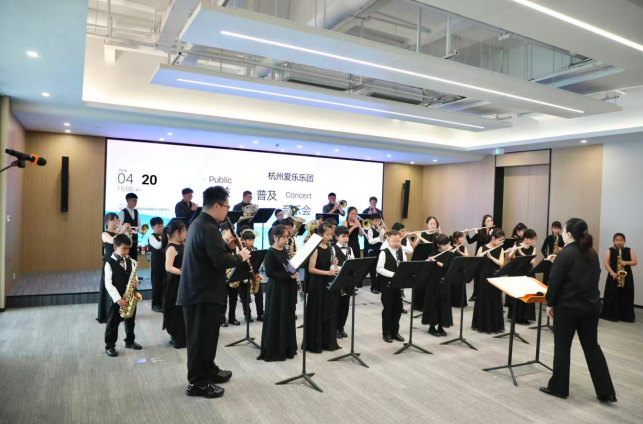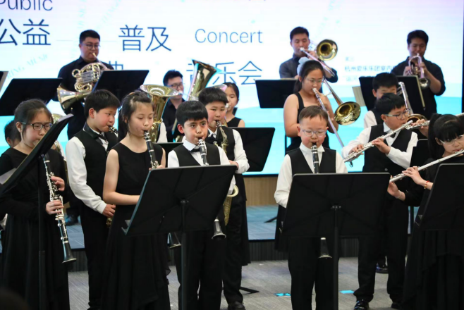 4月20日,在杭州市政协新时代协商民主实践中心内,响起了一阵阵热烈而充满朝气的铜管与打击乐声。这不是一场普通的音乐会,而是一场由杭州爱乐乐团带来的公益古典普及音乐会。台上的演奏者,不仅有专业的杭州爱乐乐团铜管打击乐七重奏,还有一群来自临平区运河街道的孩子—“运河·爱乐”乡村青少年乐团。