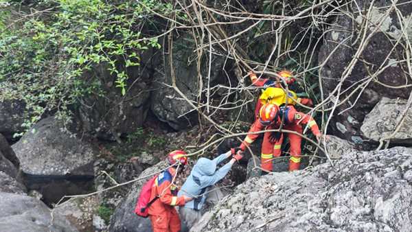 4月19日,市民古女士与两名同伴在桐庐山区徒步登山游玩时,不慎偏离路线被困深山。接到求助报警后,桐庐消防救援大队第一时间联动公安、极速救援队等多方救援力量,连夜开展山岳搜救行动,历经14小时紧张作业,成功将3名被困人员安全转移至山下。