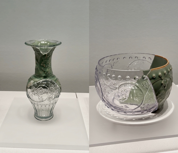 展厅里,锔补、金属片修补、金缮、釦器四种修补技艺依次铺展。其中,锔瓷与釦器是数量占比最大的两类展品。