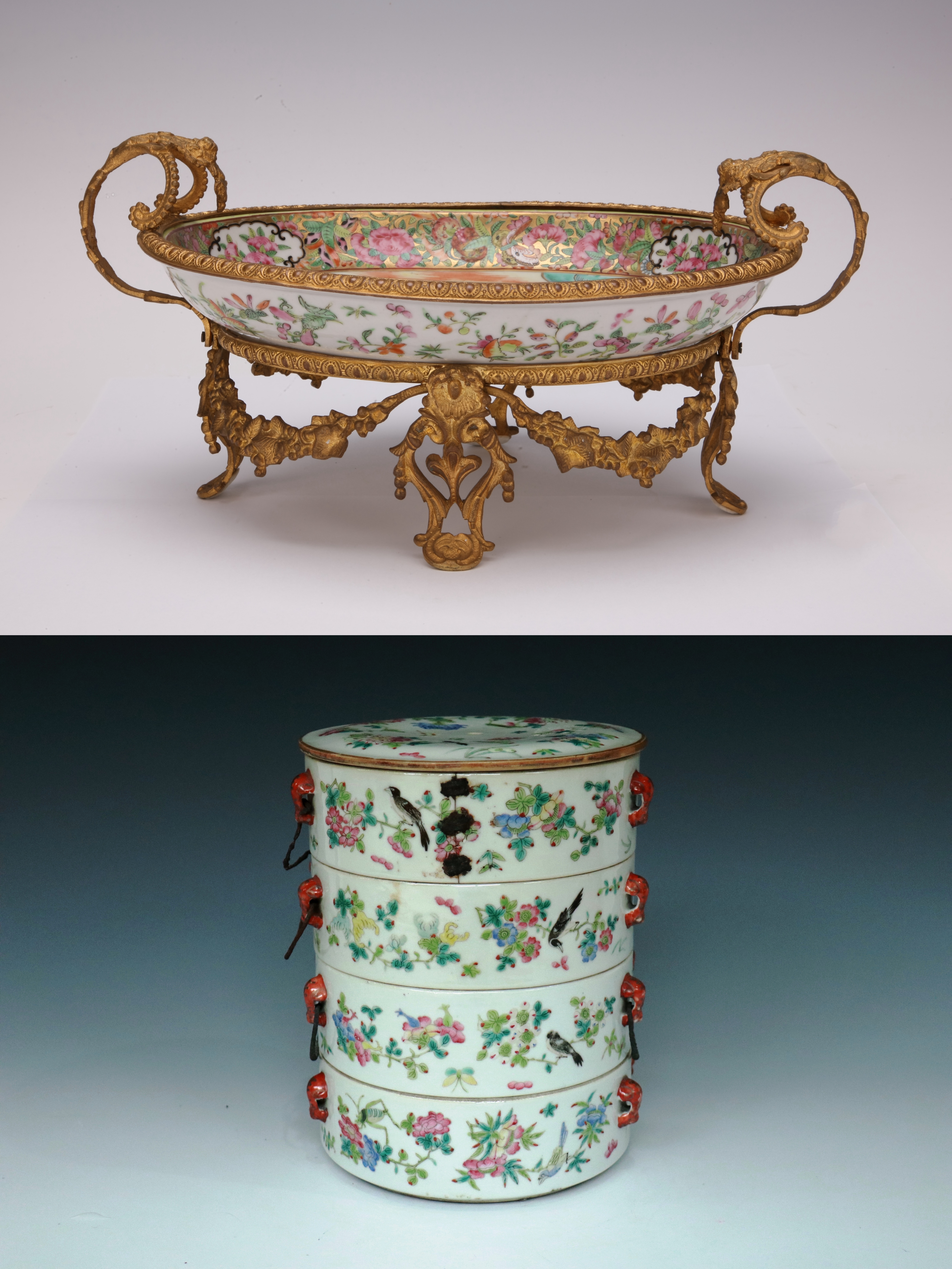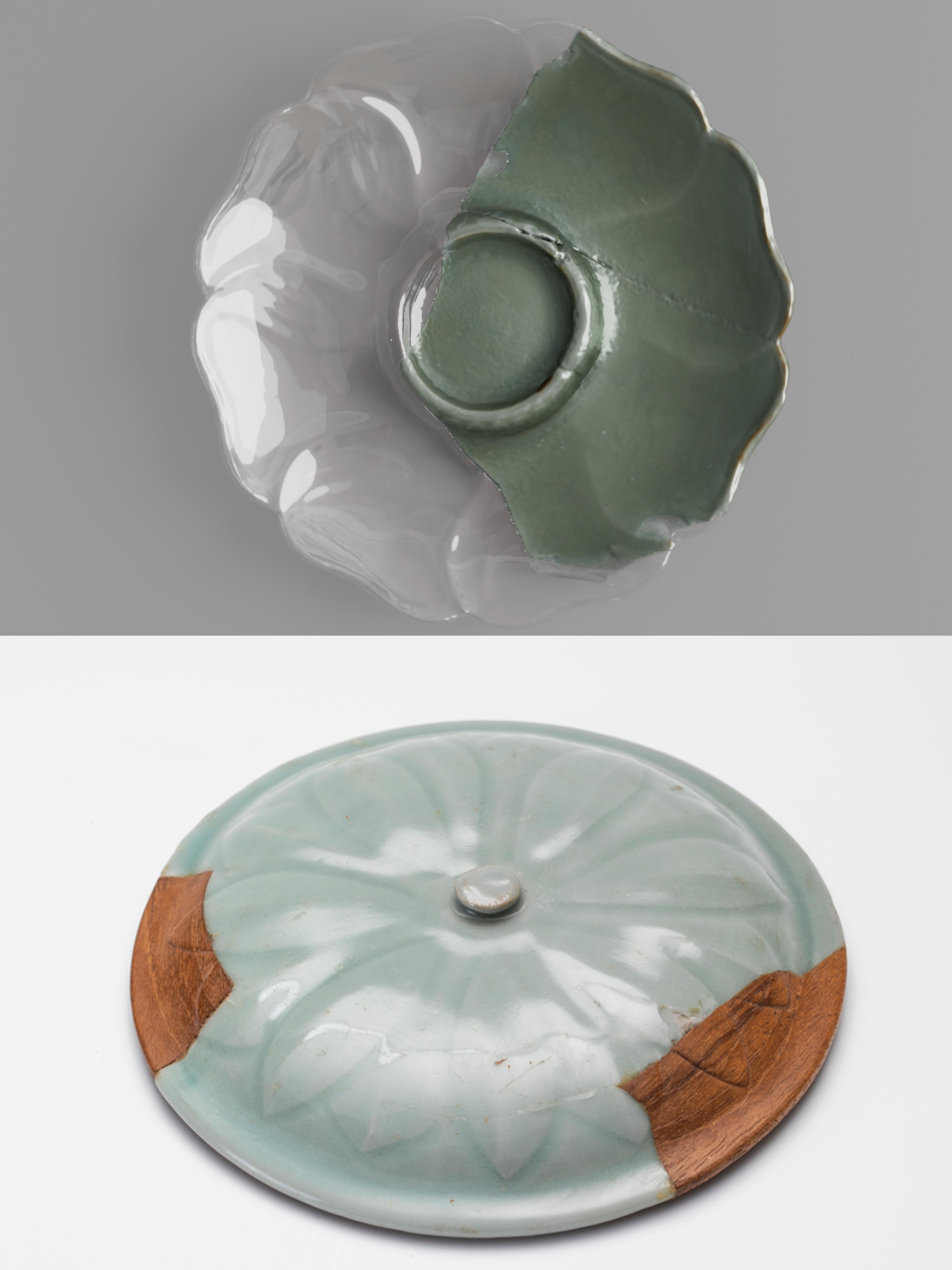 还有一类陶瓷釦器,主要是在陶瓷器的口沿、把手等这些比较容易破损的部位包上金属釦,既起到加固保护作用,也借此彰显器物主人的独特身份。