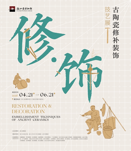 4月21日,由浙江省博物馆主办,浙江艺术职业学院、浙江大学艺术与考古博物馆、金华市博物馆协办,全国二十余家文博机构支持的“修·饰——古陶瓷修补装饰技艺展”在浙江省博物馆之江馆区四楼书画馆A正式开幕。