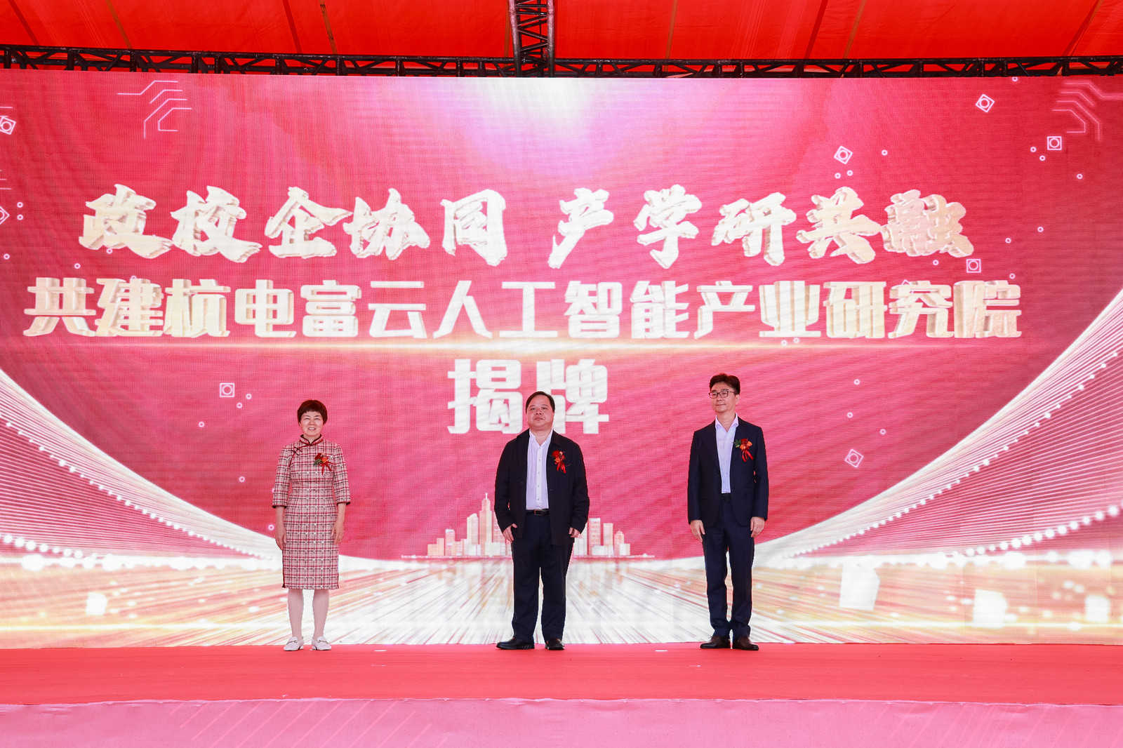 4月22日上午,以“智汇富春·芯启未来”为主题的2026富阳区人工智能发展联盟生态合作大会暨杭电富云人工智能产业研究院揭牌仪式在杭州富春湾新城举行。