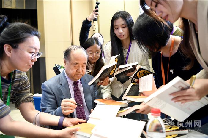 面对台下坐着的创业青年,莫言说什么也不肯给建议。“创业的年轻人根本不需要建议,他们都创业了,还要建议干嘛?”他说,自己写作上若是遇到坎儿,反倒想去请教杭州的独角兽们。这话里带着笑,也带着对新一代的尊重。