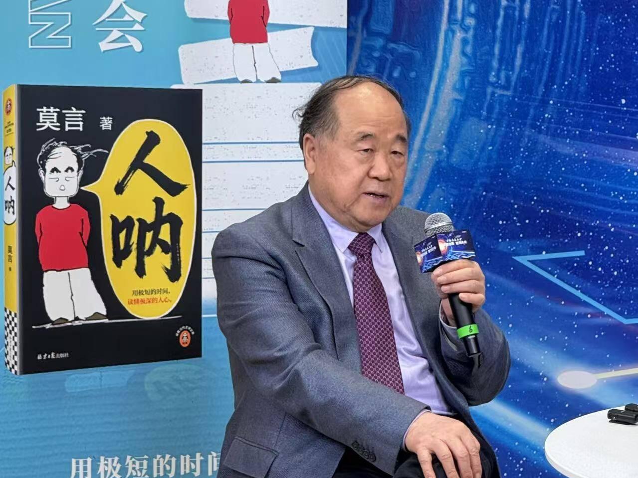 说到书名,莫言认真了起来:“人确实是非常简单的一个字,一撇一捺,但也是最复杂的一个字。”他回忆起当年翻《辞海》,“人”字的条目有数百条甚至数千条。一切以人为本,一切都是人创造的。千言万语说不完、说不透,最后只能是一声叹息:“人呐。”