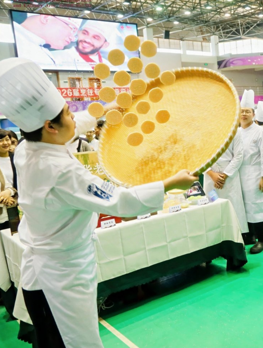 该校2023烹调1班韩壮在团队中担任面点师,作为衢州邵永丰麻饼非遗传承基地的实习生,他和伙伴通过一桌“风华麦香宴”,重现古法技艺,面点的芝麻香里,飘着非遗温度。