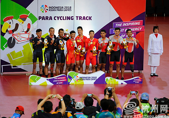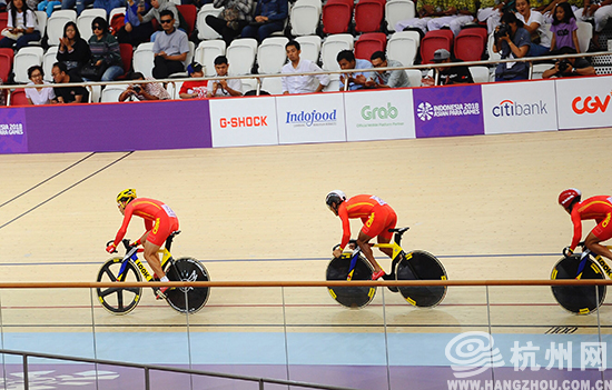 杭州网讯 10月11日下午,2018第三届亚洲残疾人运动会上,杭州籍运动员李樟煜和其他两名运动员在自行车男子c1-5级男子团体竞速赛中,以50.323秒的成绩名列榜首,为中国代表团再添一金。