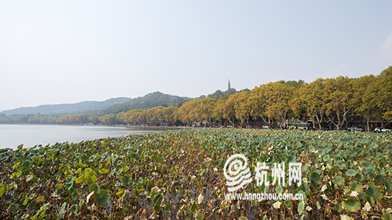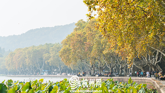秋到杭州西湖 北山路法国梧桐一派旖旎的秋日风光(组图)