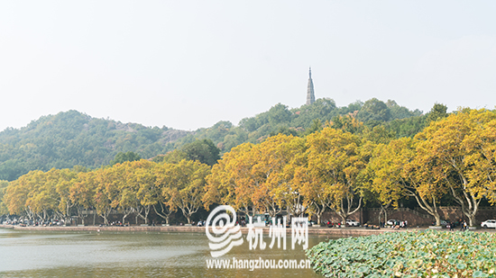 杭州网讯 十月金秋,杭州西湖也开始渐入佳境,漫步在保俶塔下的北山路,法国梧桐散发出一派旖旎的秋日风光。