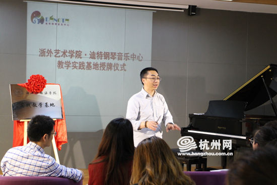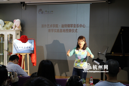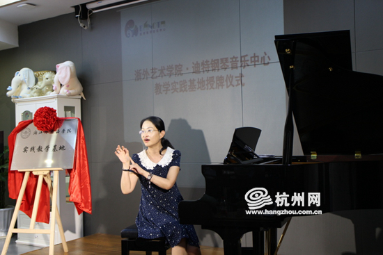 浙江外国语学院艺术学院音乐系主任、中国音乐家协会会员、中国教育学会音乐教育委员会会员、浙江音乐家协会会员、博士:周炜娟教授、迪特钢琴音乐中心总经理为基地揭牌。