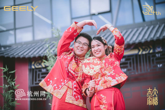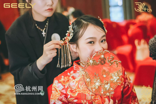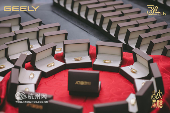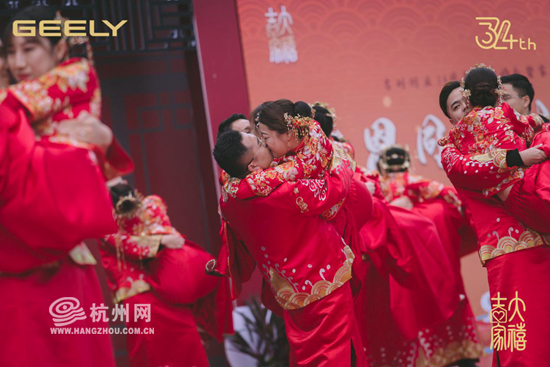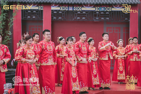 每年11月6日是吉利的司庆日,司庆期间,吉利会邀请即将结婚的员工、客户、供应商、经销商,举行一场盛大的集体婚礼。今年,吉利邀请了34对新人,特别策划了一场中国风婚礼。