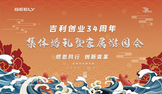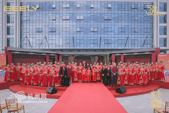 10月31日,在宁波杭州湾吉利汽车研究院二期,吉利正式开启34周年司庆。当天,34对“吉利新人”在场区内举行了盛大的中式集体婚礼,收获了来自同事、领导及合作伙伴的满满祝福。同时,元动力见面会、家属游园会也在司庆日同步进行,践行吉利以人为本的企业文化和人文关怀。