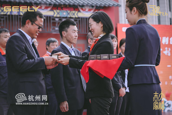 集体婚礼结束后,当天另一场重要文化活动——吉利2020忠诚奖勋章颁授仪式隆重上演。入职吉利5年、10年、15年、20年的5556名员工获得了本年度忠诚奖勋章。