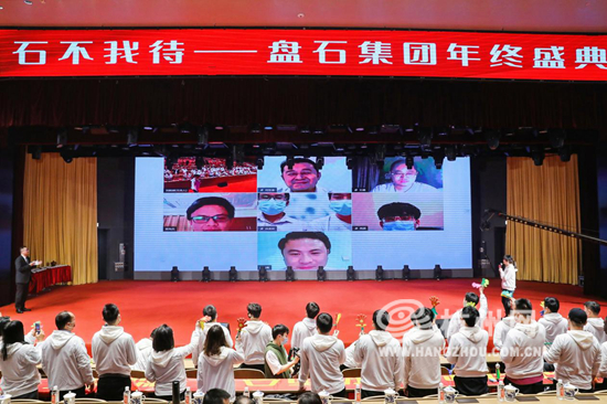盘石集团首席执行官CEO陈孝民及各事业部CEO作2021业务总结和2022战略规划,并与仍驻守海外的员工视频连线,送上新年祝福。