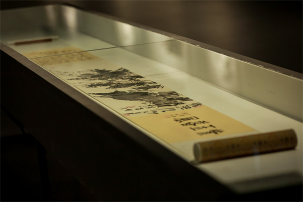 第三部分“炼笔养境”结合多媒体与文献材料呈现画学传承。在文献柜中展示着艺术家多年的学画心得、创作草图、课徒手稿、教案笔记以及画册专著。