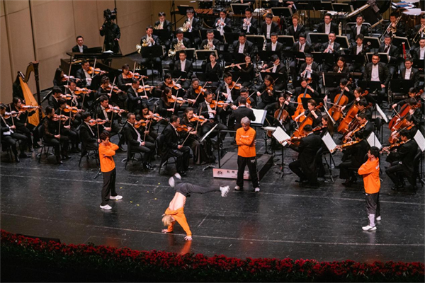 在交响乐的映衬下,亚运项目武术、霹雳舞(Breaking)风采也在舞台上一一展现,体育与交响乐创新联动,为观众带来视听双重享受。